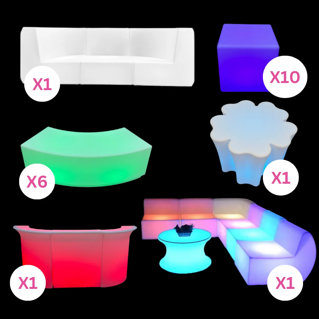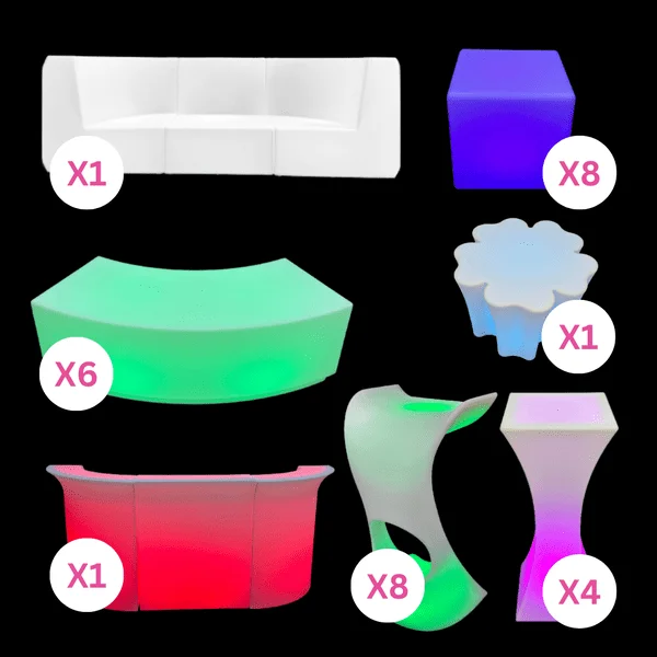 We offer the most competitive glow furniture hire prices in Sydney, ensuring you get the best deal available.